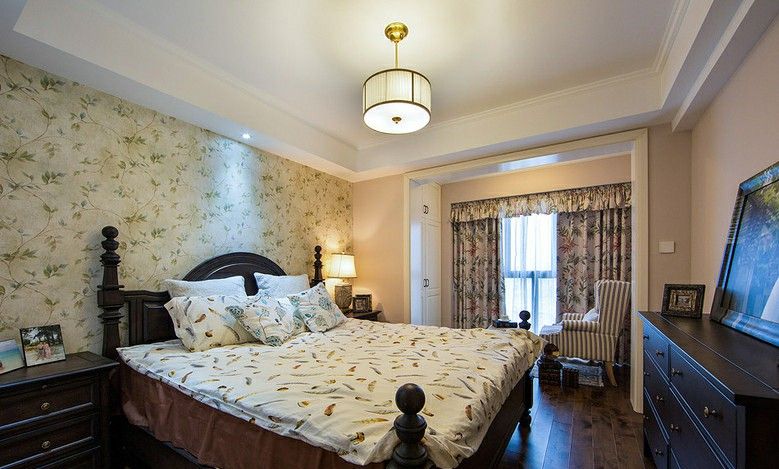 美式家居的臥室布置較為溫馨,作為主人的私密空間,主要以功能性以及實(shí)用舒適為斟酌的重點(diǎn),多用溫馨柔軟的成套布藝來(lái)點(diǎn)綴,同時(shí)在軟裝以及用色上無(wú)比統(tǒng)1。