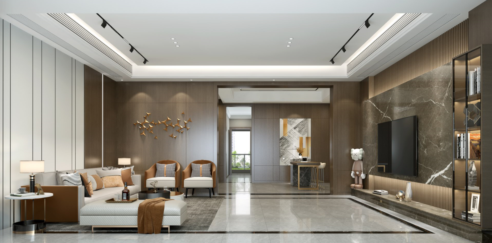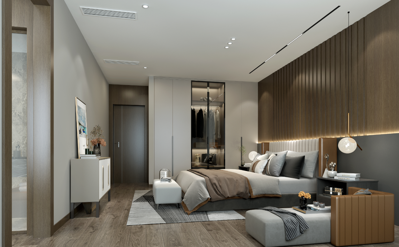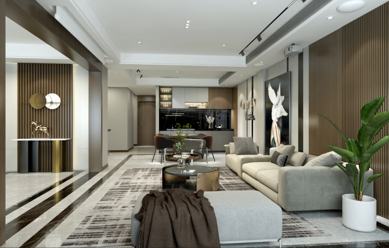 設計特點:這套現(xiàn)代簡約風格裝修案例,整體空間以現(xiàn)代簡潔為主,將滿足主人的居住需求作為設計導向,在空間內融合了多種現(xiàn)代高級的元素,咖啡色的木質元素搭配灰色詮釋不一樣的高級感,為家人營造出一種舒適溫馨的居住體驗。