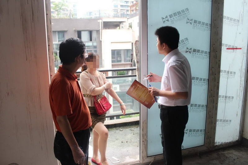 質(zhì)檢正在向潘老師夫婦介紹公司施工管理和服務(wù)的標準。新思路裝飾一直堅持“客戶滿意是唯一的工作標準”,努力踐行“裝修做客戶口碑”的理念,致力為每一位客戶提供高品質(zhì)的工程質(zhì)量和裝修服務(wù)。