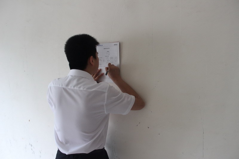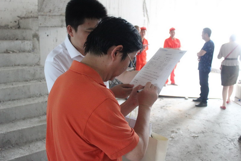 質(zhì)檢正在認真填寫客戶服務(wù)手冊,以確認本次進場交底符合公司工程施工管理的相關(guān)規(guī)定。