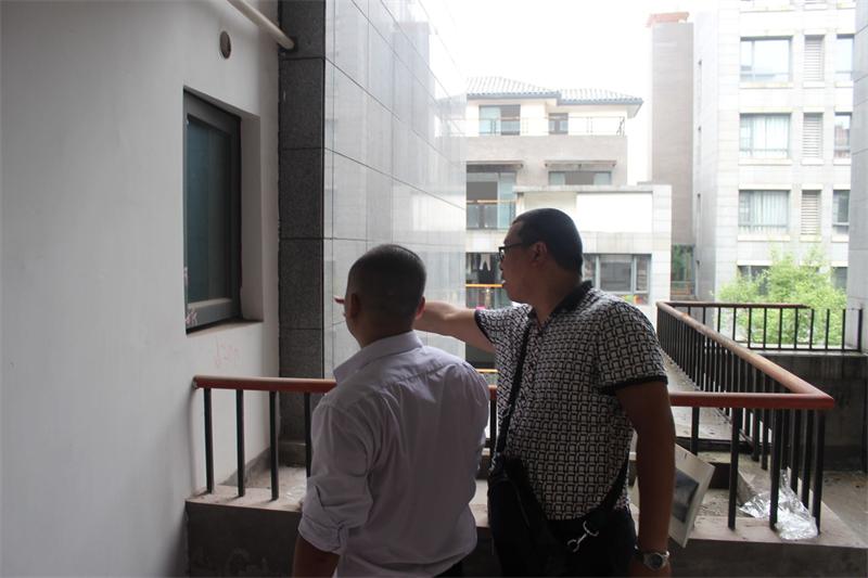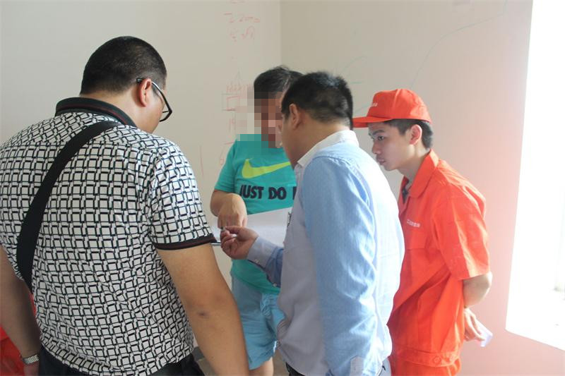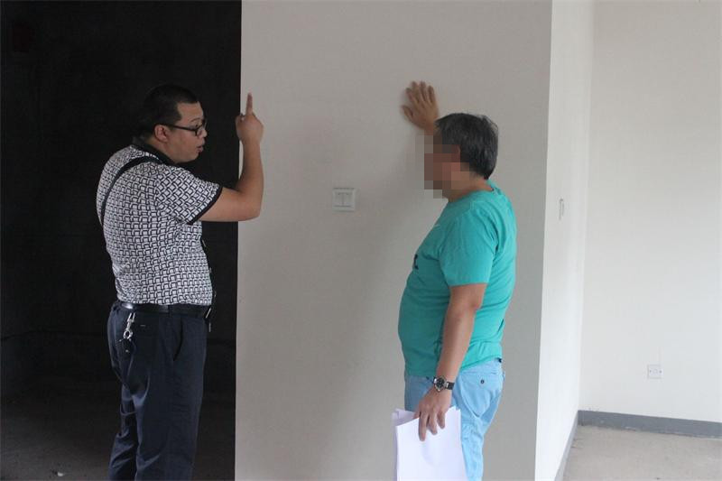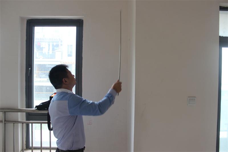 工程質(zhì)檢正在認(rèn)真檢查墻體是否存在空鼓情況。出現(xiàn)空鼓問題的,質(zhì)檢會(huì)立即向物管反應(yīng),督促物管及時(shí)解決問題。