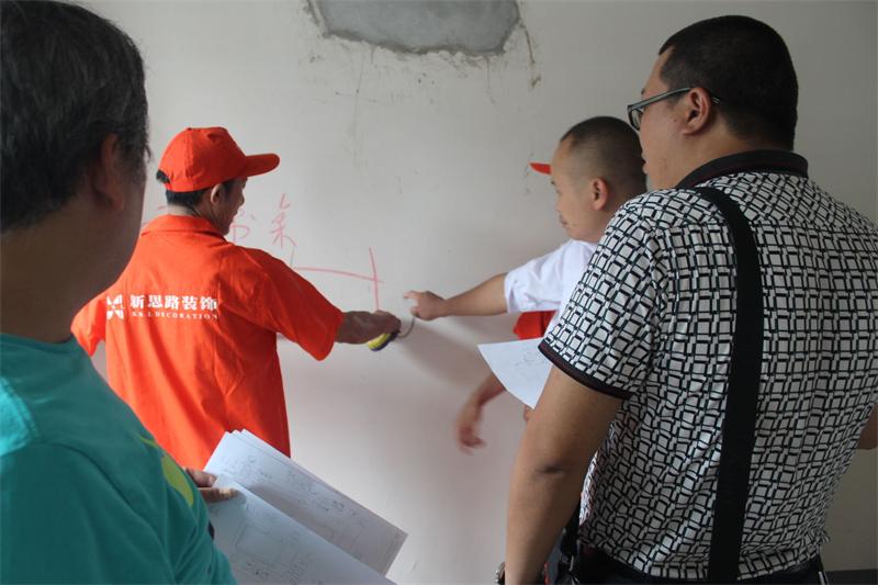 工程質(zhì)檢正在向業(yè)主介紹公司施工管理和服務(wù)的標(biāo)準(zhǔn)。新思路裝飾一直堅(jiān)持“客戶滿意是唯一的工作標(biāo)準(zhǔn)”,努力踐行“裝修做客戶口碑”的理念,致力為每一位客戶提供高品質(zhì)的工程質(zhì)量和裝修服務(wù)。