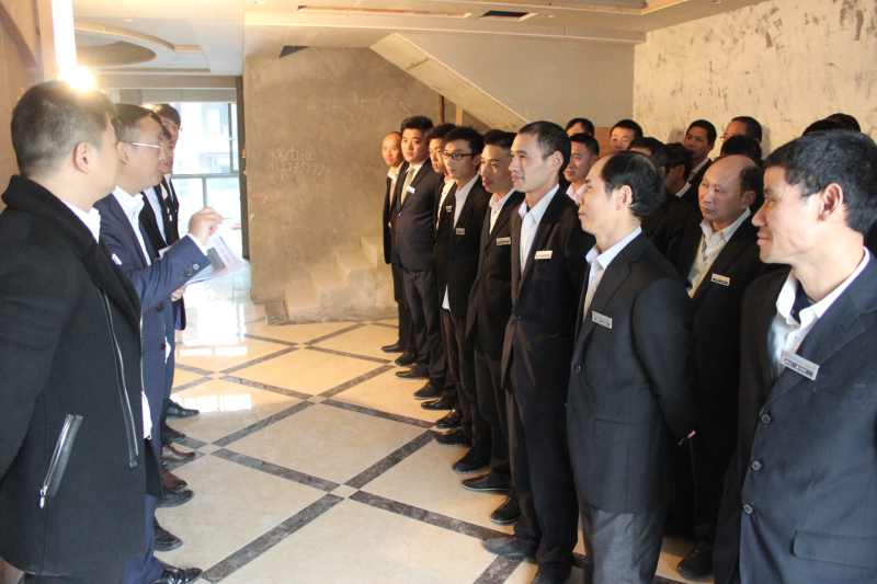 培訓當天氣溫較低,但項目經(jīng)理們依舊精神飽滿,整齊穿戴西服,井然有序的排成一列,展現(xiàn)出新思路裝飾施工管理隊伍團結向上的良好風貌。此次培訓由工程部文經(jīng)理親自主講,主要內容是以現(xiàn)場施工管理為主。他結合自己多年現(xiàn)場施工及管理經(jīng)驗,通過實際案例,從施工的各個環(huán)節(jié),包括防水工藝的規(guī)范標準、地磚鋪貼的排版要求、地面斜水的高低差值、吊頂施工細節(jié)等方面,深入淺出的為大家講解。在講解過程中,參訓人員頻頻舉手,或提出疑問,或分享心得,現(xiàn)在互動頻繁,共同營造了一個輕松、良好的培訓氛圍。培訓結束后,所有參訓人員還參觀了現(xiàn)場工地,大家結合現(xiàn)場案例,熱烈討論,分享彼此在施工過程中的經(jīng)驗和心得,從而推動了培訓成果快速落地。