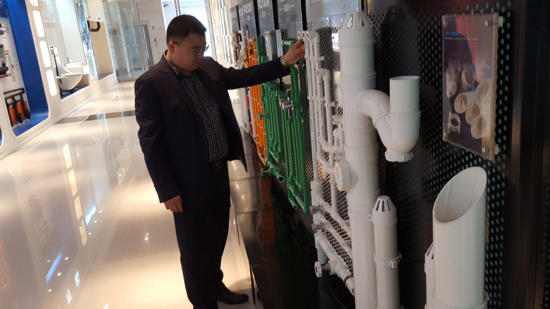 愛康企業(yè)負責(zé)人正在向李總詳細介紹同層排水管道