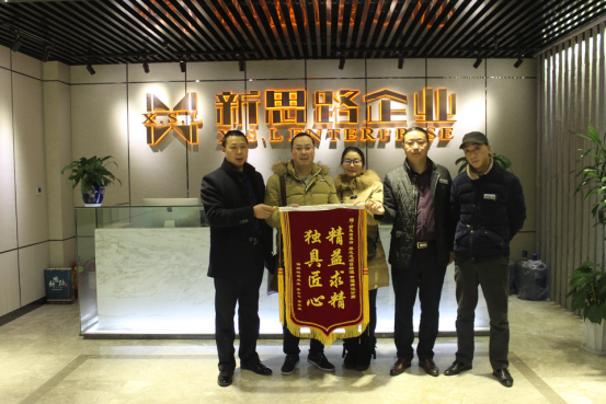 1月13日早上10點左右,重慶的早晨濃霧剛剛散開,露出多日不見的陽光,來自保利觀塘的業(yè)主羅先生一家就來到了新思路裝飾總部,為我們公司的黎志忠項目經(jīng)理與黃福燕贈上一面上書“精益求精、獨具匠心”的錦旗,借以表達(dá)對我公司兩位員工的感激之情。