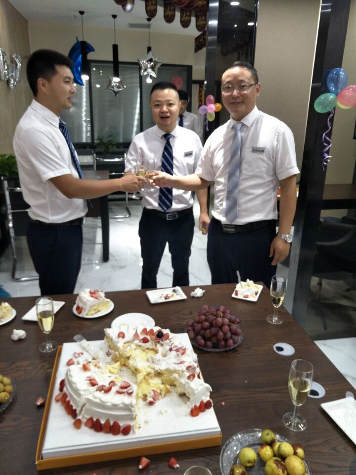 工程部文經(jīng)理與張經(jīng)理碰杯慶祝新思路生日