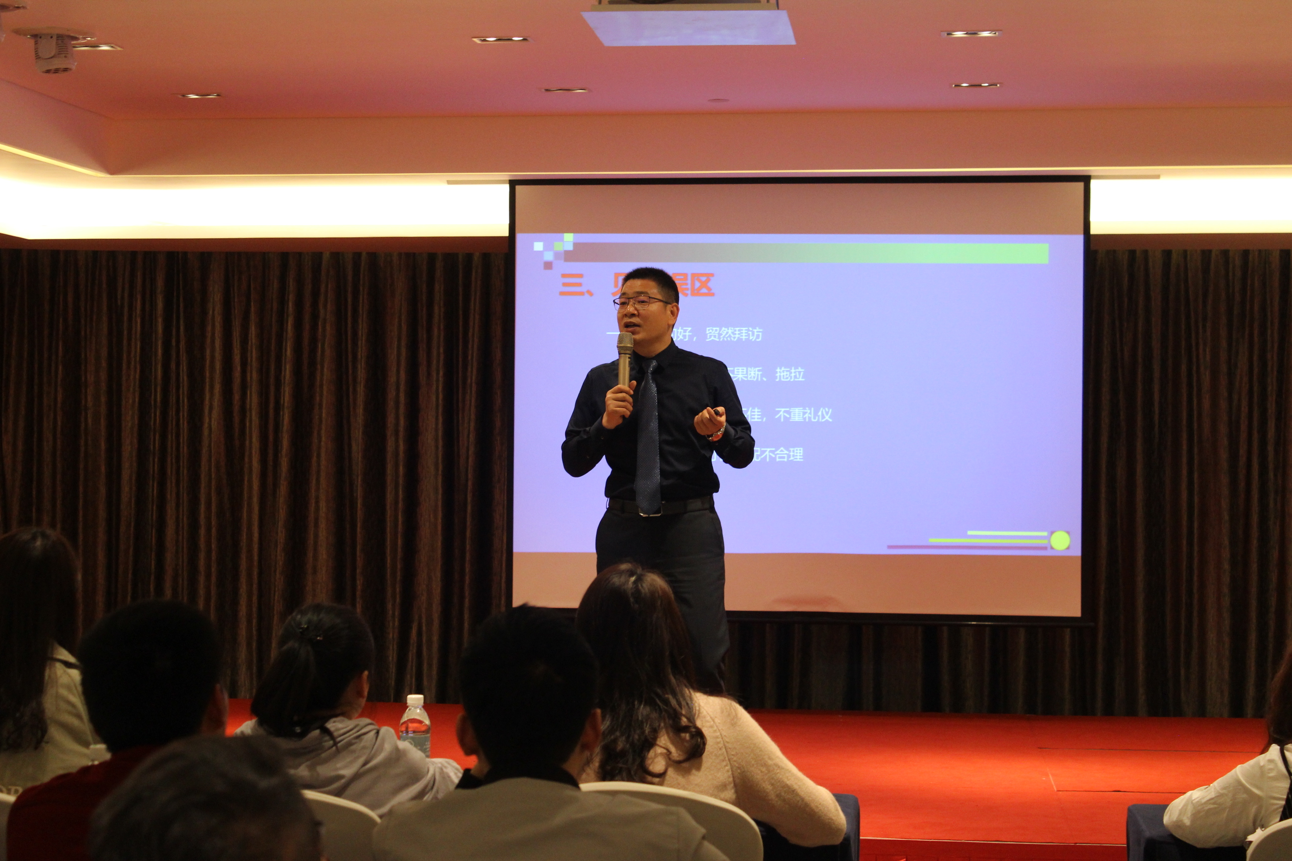 張總的這次《銷售精英特訓營》培訓會講得非常精彩,深入淺出地分析我們銷售人的不易和困難,深刻全面地總結了銷售人在工作中遇到的種種問題和誤區(qū)。銷售不僅僅是一種職業(yè),更是一種生活方式!張總講到:銷售帶給我們的是一種過程,過程中有辛酸、有苦難,但恰恰是這種過程磨練了我們的意志和能力,這樣我們就會更加強大、自信!因為痛才是歷練,苦才能成長,也只有苦難的過程才能有收獲!