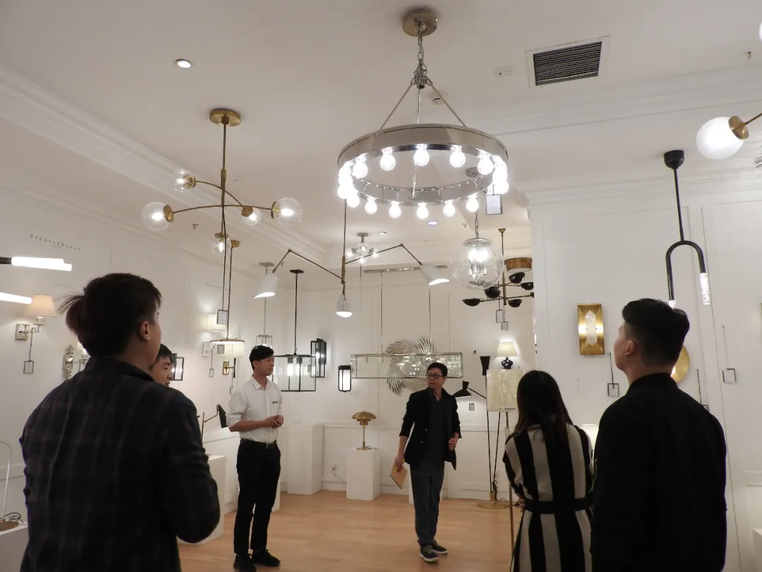 設(shè)計(jì)師們正在店員的帶領(lǐng)下參觀燈具