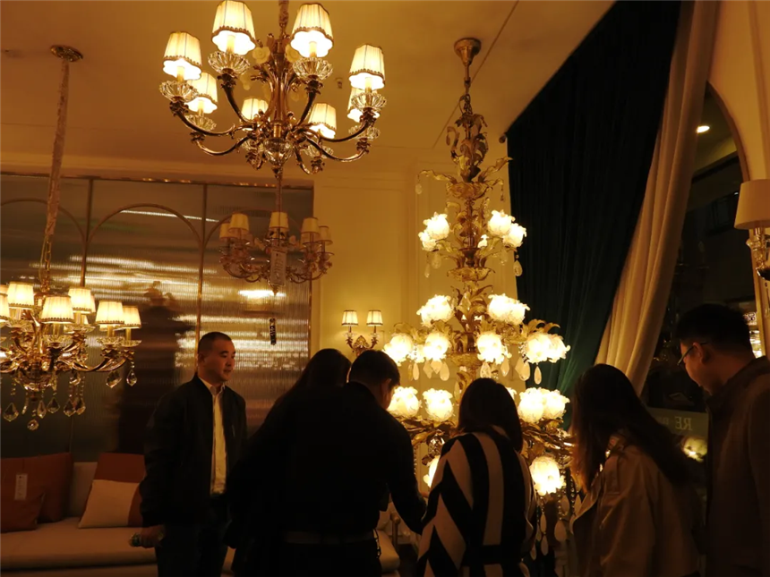 各種與歐式、美式風(fēng)格適配的燈具,奢華無比。最后一盞燈被店員稱為“鎮(zhèn)店之寶”,全手工黃銅打造,價(jià)值人民幣三十余萬