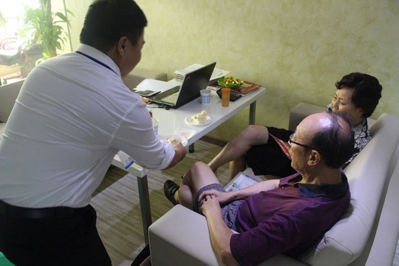 李總與客戶同切新思路十周歲生日蛋糕