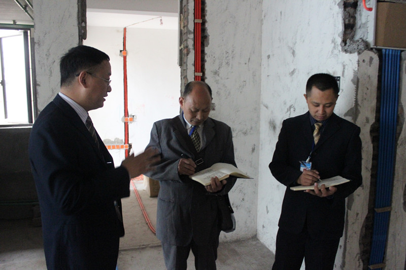 此次巡查主要針對工地形象,如標示牌、成品保護、器械配備、清潔衛(wèi)生等多方面進行考核和檢查。同時對隱蔽工程如水電改造、土建、基層處理等工種進行認真檢查。在各個施工現(xiàn)場,工人們正有條不紊的進行施工,各樣材料的擺放及成品保護也都細致到位,工地綜合質(zhì)量基本達標,處處顯露出新思路“精鉆工程”的細致與獨到之處。在檢查的同時,巡查小組還依照公司工地管理相關(guān)規(guī)章制度,對所有工地進行了總結(jié)評分,并由客服人員記錄在案。巡查過程中,文經(jīng)理一直把“工程質(zhì)量”掛著嘴邊。他多次強調(diào),工程質(zhì)量是新思路的根本,是公司生存和發(fā)展的命脈,每個質(zhì)檢和項目經(jīng)理必須要以身作則、恪盡職守,做好工地質(zhì)量檢查和施工工作,做好工地服務(wù)的每一個細節(jié),為我們的客戶把好工地質(zhì)量關(guān)。