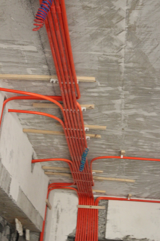 文經(jīng)理正在向項目經(jīng)理講解強電線路施工要求