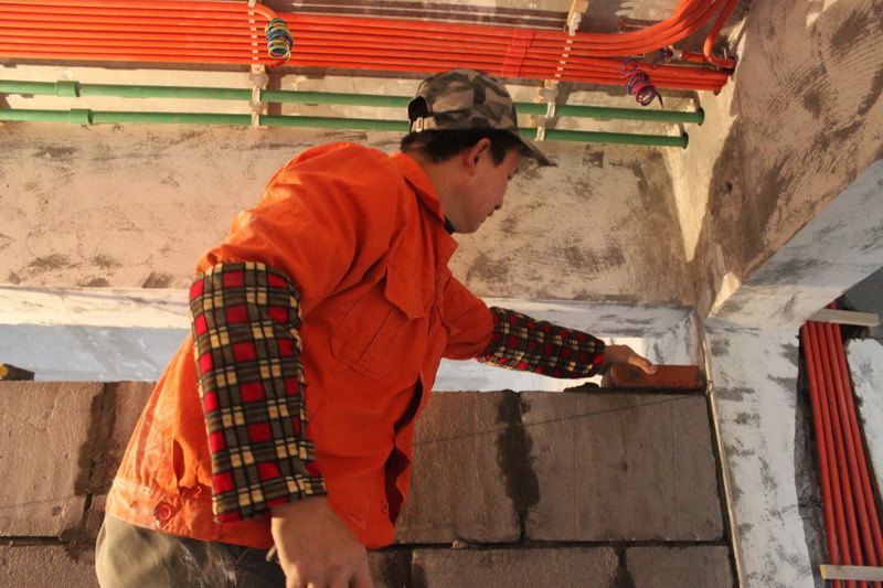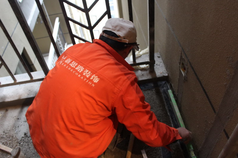 工人師傅正在進行泥作施工