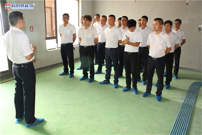 (市場(chǎng)部主管正在為大家講解水電工藝)