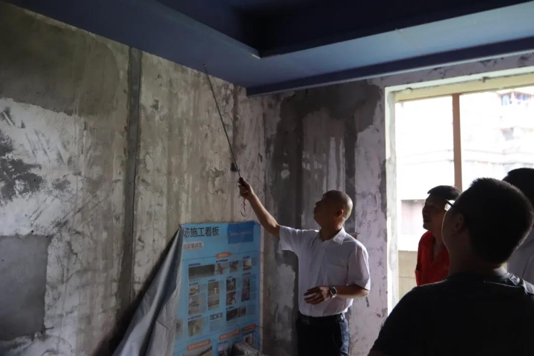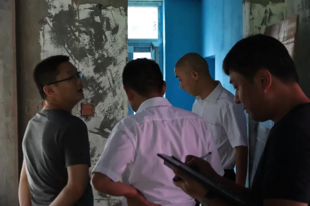 ▲巡查小組查看最后一個(gè)小區(qū),檢查墻上裝飾