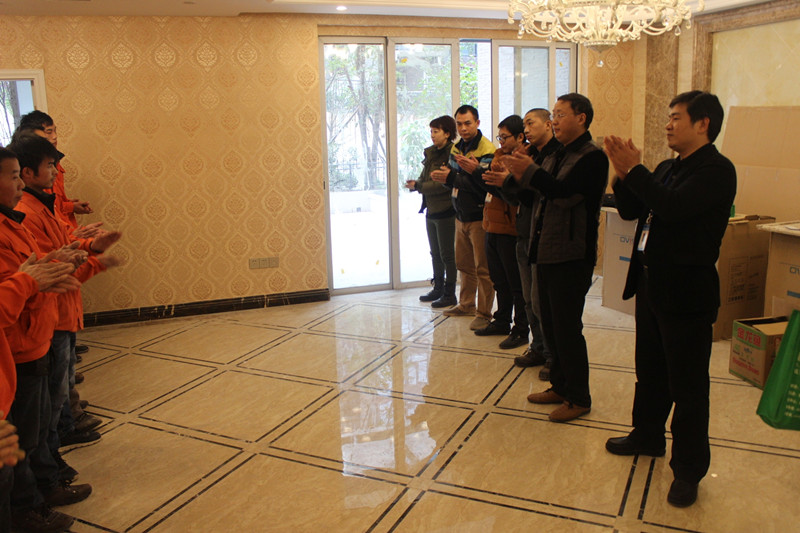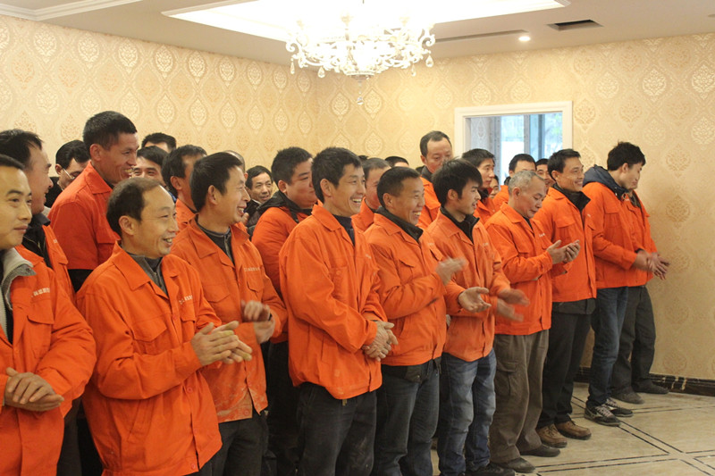 張總在會(huì)上肯定了一線員工的工作,向我們的員工表示感謝,把掌聲獻(xiàn)給我們的泥水工師傅們
